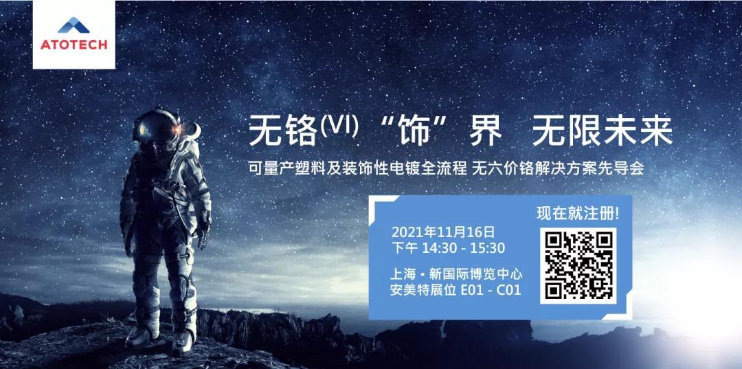 研讨會 | 無(wú)鉻(VI)“飾”界,無(wu)限未來!可(ke)量産塑料(liào)及裝飾性(xìng)電鍍全流(liú)程無六價(jia)鉻解決方(fang)案先導會(hui)