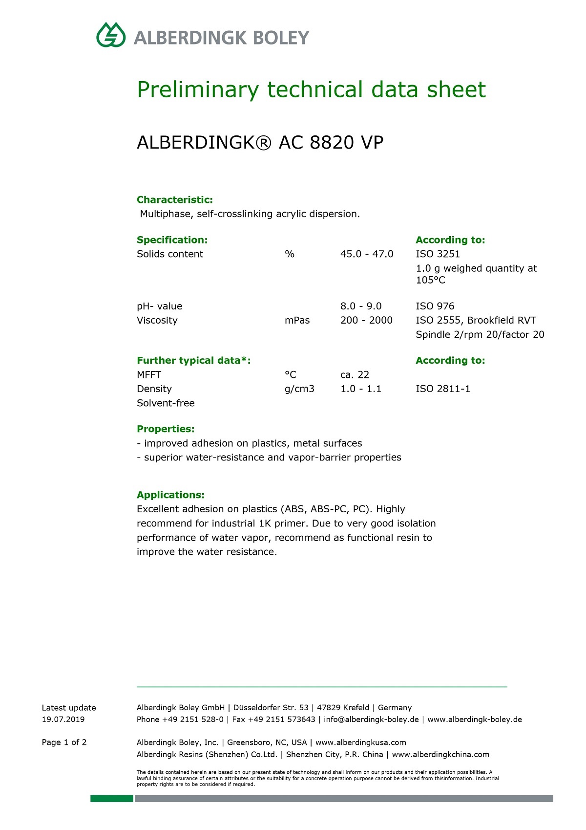 建(jiàn)議作爲水性單(dān)組分塑膠底漆(qī)用樹脂,該産品(pin)有極佳的🌏水汽(qi)阻隔性能,因此(ci)也可以把該産(chan)品作爲輔助功(gong)能性樹脂提升(sheng)塗層的耐水性(xing)。