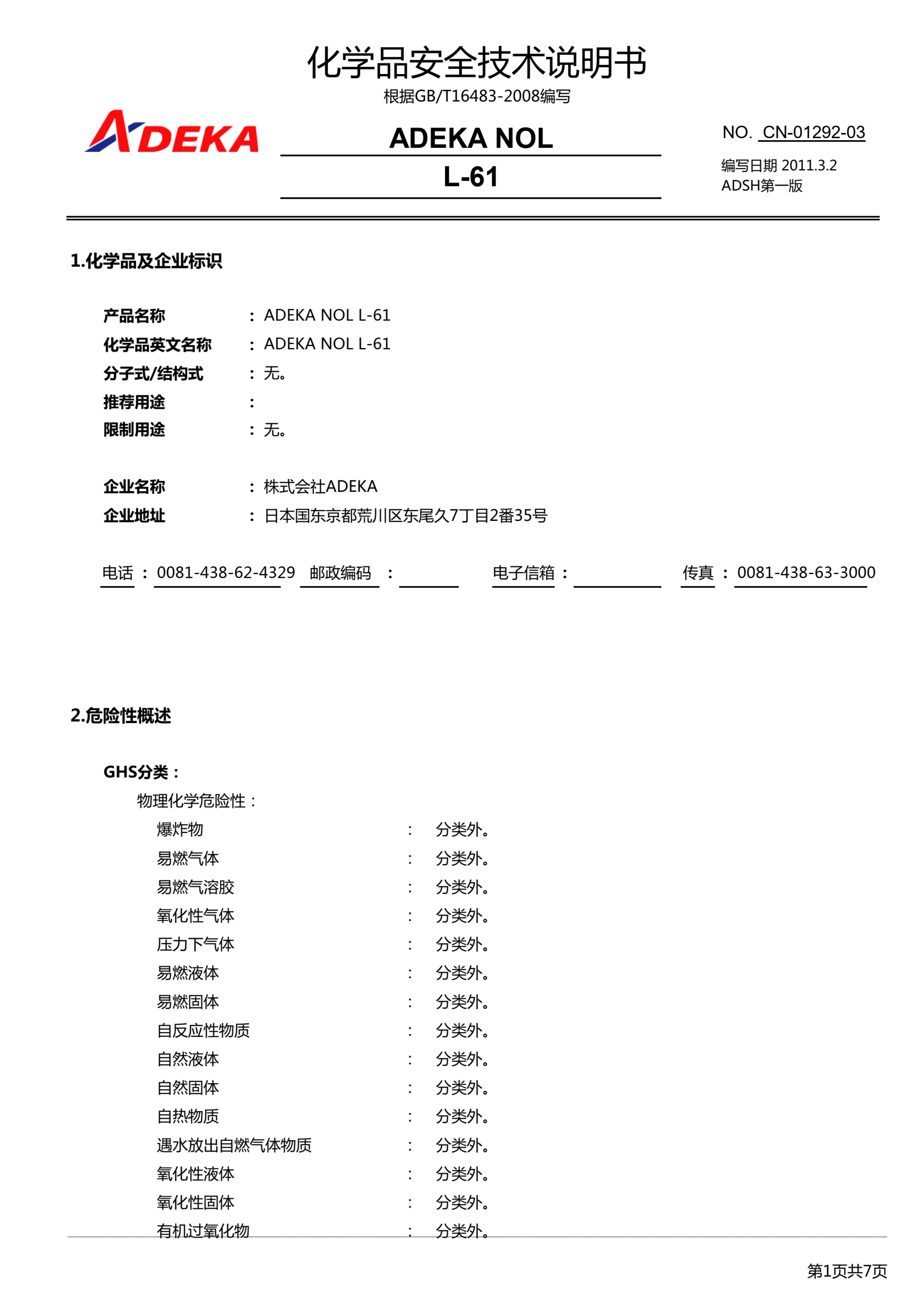 艾(ài)迪科ADEKA NOL L-61聚氧乙(yi)烯聚氧丙烯(xi)甘醇。