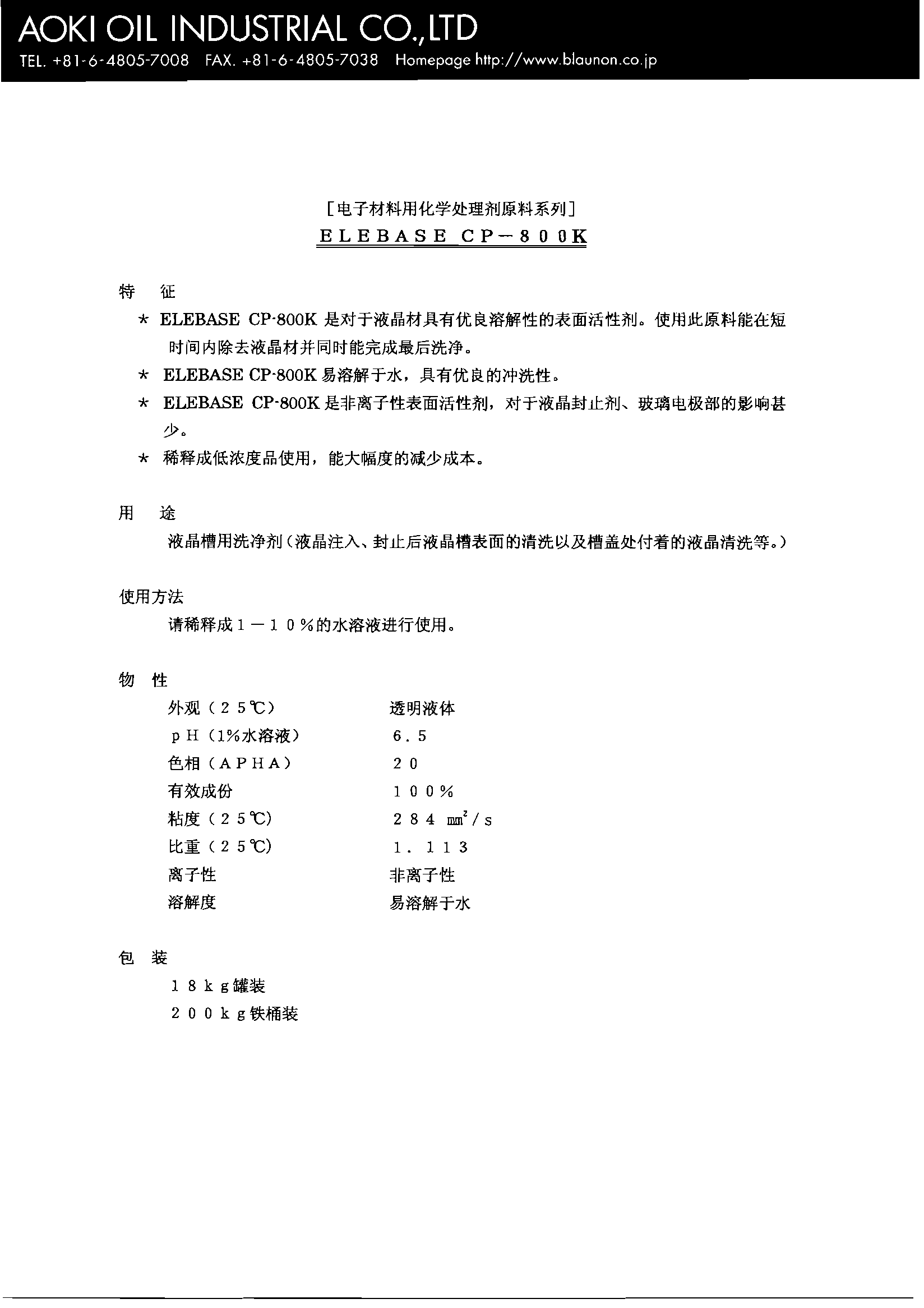 青木油脂制造液(ye)晶顯示屏濾色膜(mó)用顯影液DEVELOPER AOK-125