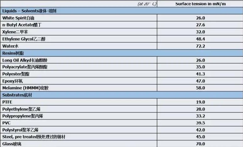 一般都在(zai)20達因以下,最低(dī)的商品化添加(jiā)劑可以低于15達(dá)因甚至更低。